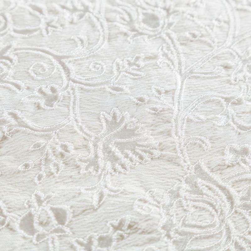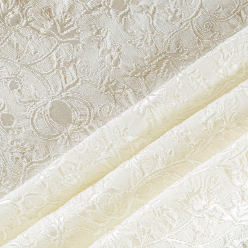 Итальянский жаккард молочного оттенка с изящным цветочным орнаметом. Ткань мягкая и пластичная, держит форму, хорошо драпируется. Повехность фактурная, матовая. Подойдет для создания вечерних  и свадебных платьев, нарядных костюмов, жакетов, юбок, корсетов, шорт.