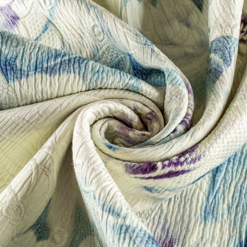 Итальянский жаккард с абстрактным акварельным принтом и цветочным дизайном. Ткань плотная, поверхность со сдержанным блеском, объемная и текстурная, хорошо драпируется и держит форму, не тянется, не просвечивает. Подойдет для пошива нарядных вечерних костюмов, платьев-футляров в стиле Dior, жакетов, топов, летних пальто, бомберов, юбок или шорт.