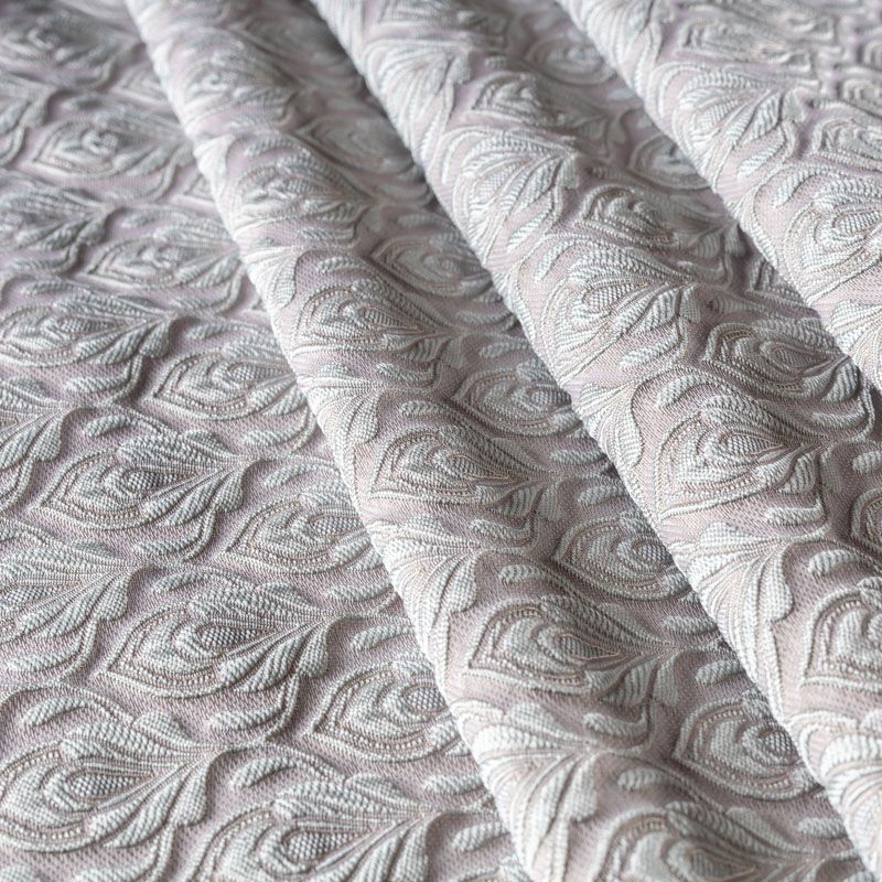 Нежный пудрово-розовый фон итальянского жаккарда  дополнен объемным фантазийным узором молочного оттенка. Ткань легкая, средней плотности, не просвечивает, не тянется. Хорошо держит форму и драпируется. Идеально подойдет для платьев различных силуэтов, костюмов, жакетов, юбок, шорт, легких пальто.