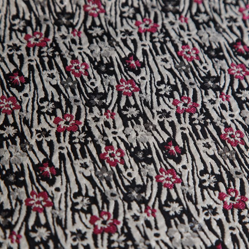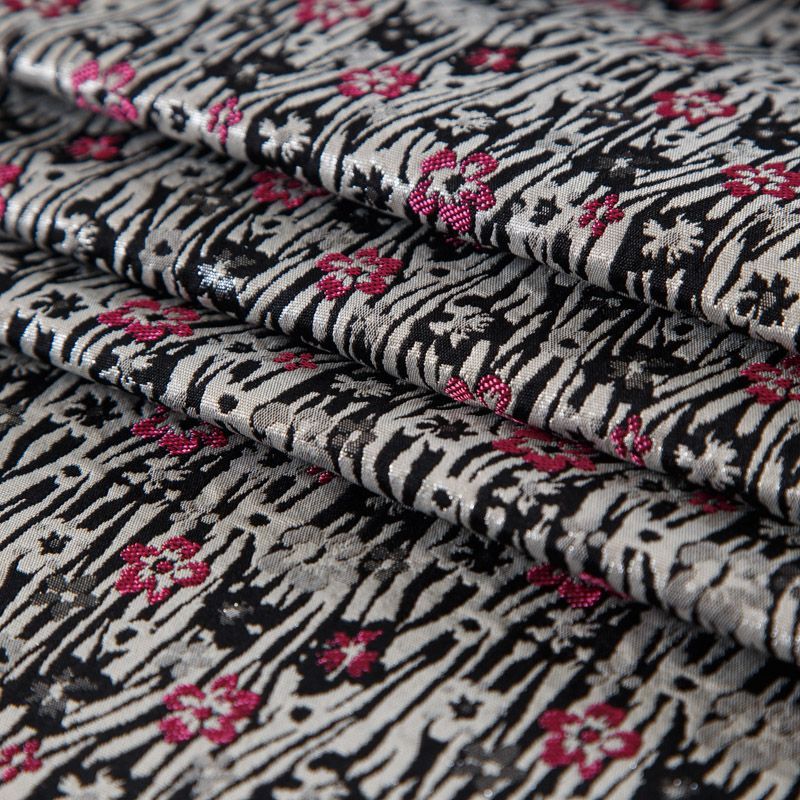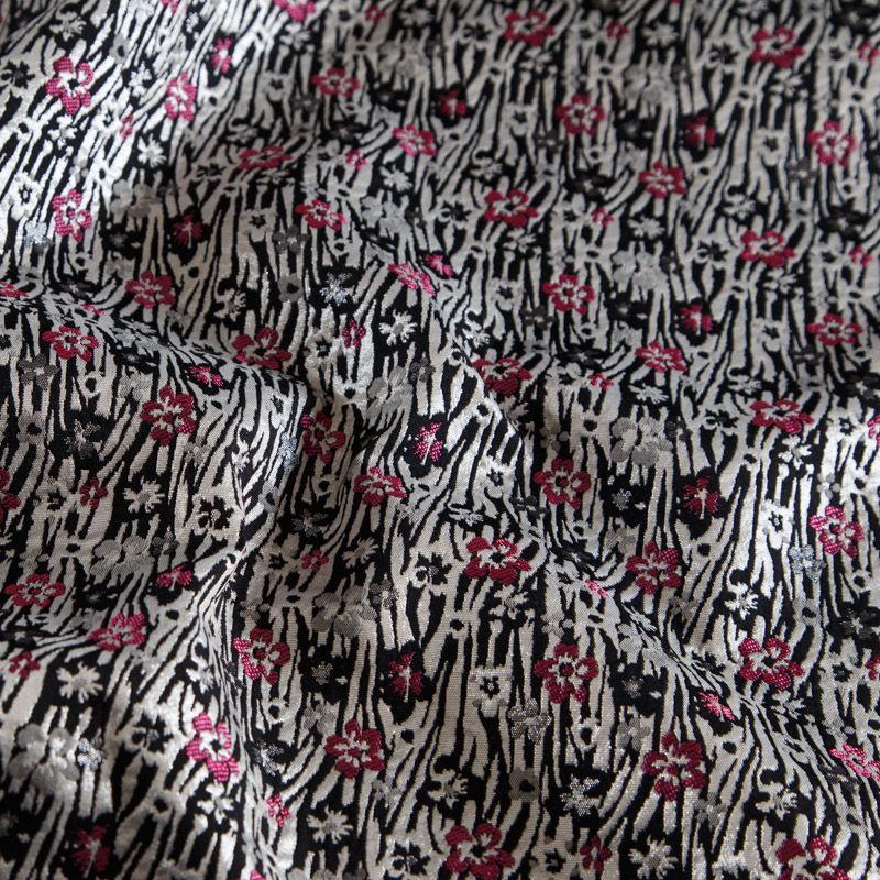 Итальянский жаккард с добавлением люрексовой серебристой нити с мелким цветочным дизайном. Ткань легкая, но плотная, поверхность матовая, фактурная, хорошо драпируется и держит форму, не тянется и не просвечивает. Подойдет для пошива нарядных вечерних костюмов, платьев-футляров в стиле Dior, жакетов, топов, летних пальто, бомберов, юбок или шорт.