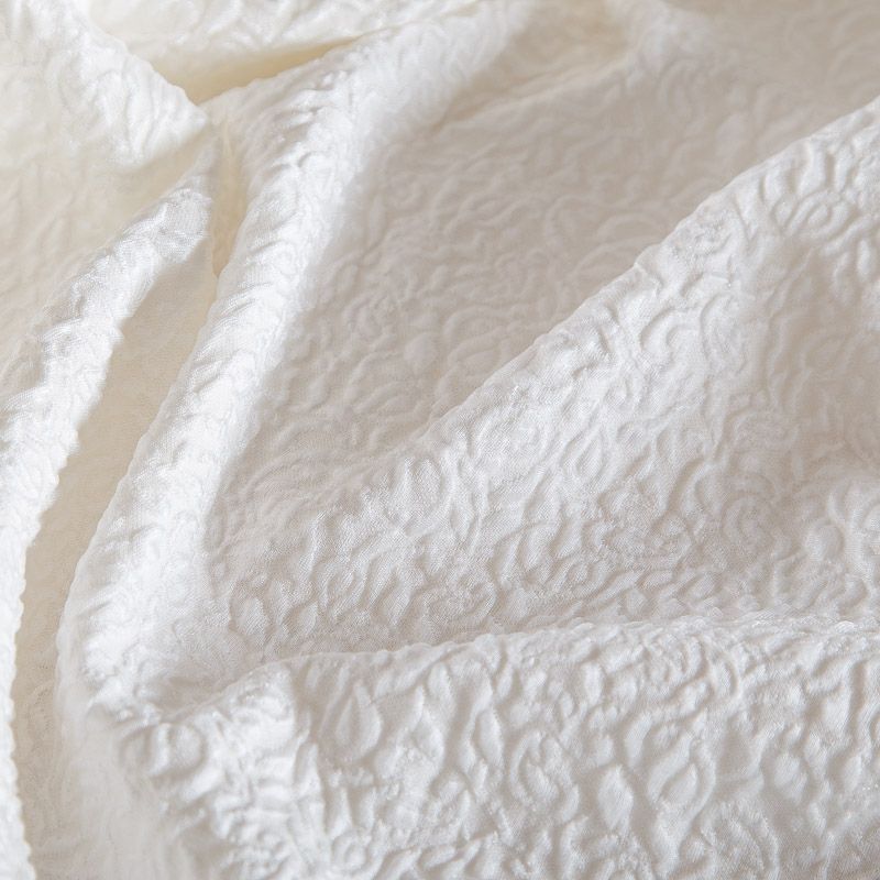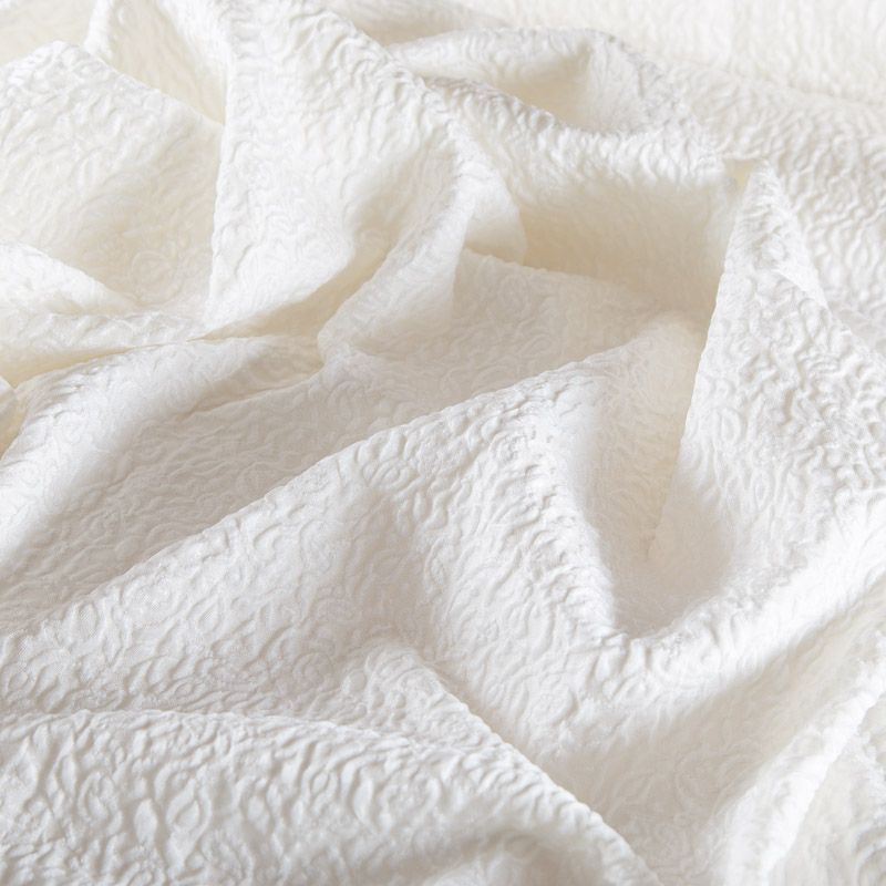 Итальянский жаккардовый трикотаж в белом оттенке из коллекции Missoni. Поверхность фактурная, матовая. Ткань отлично тянется, драпируется, пластичная.